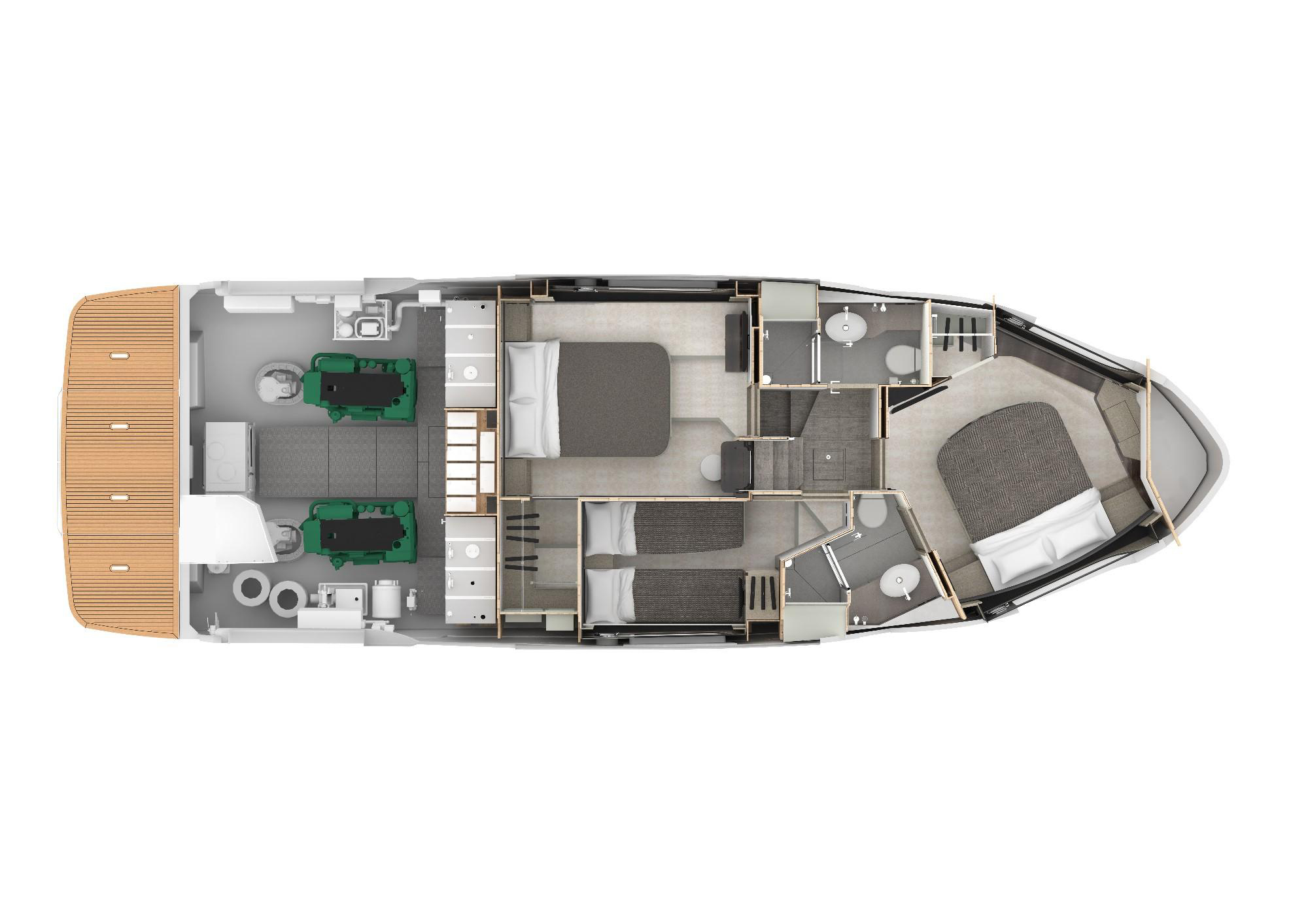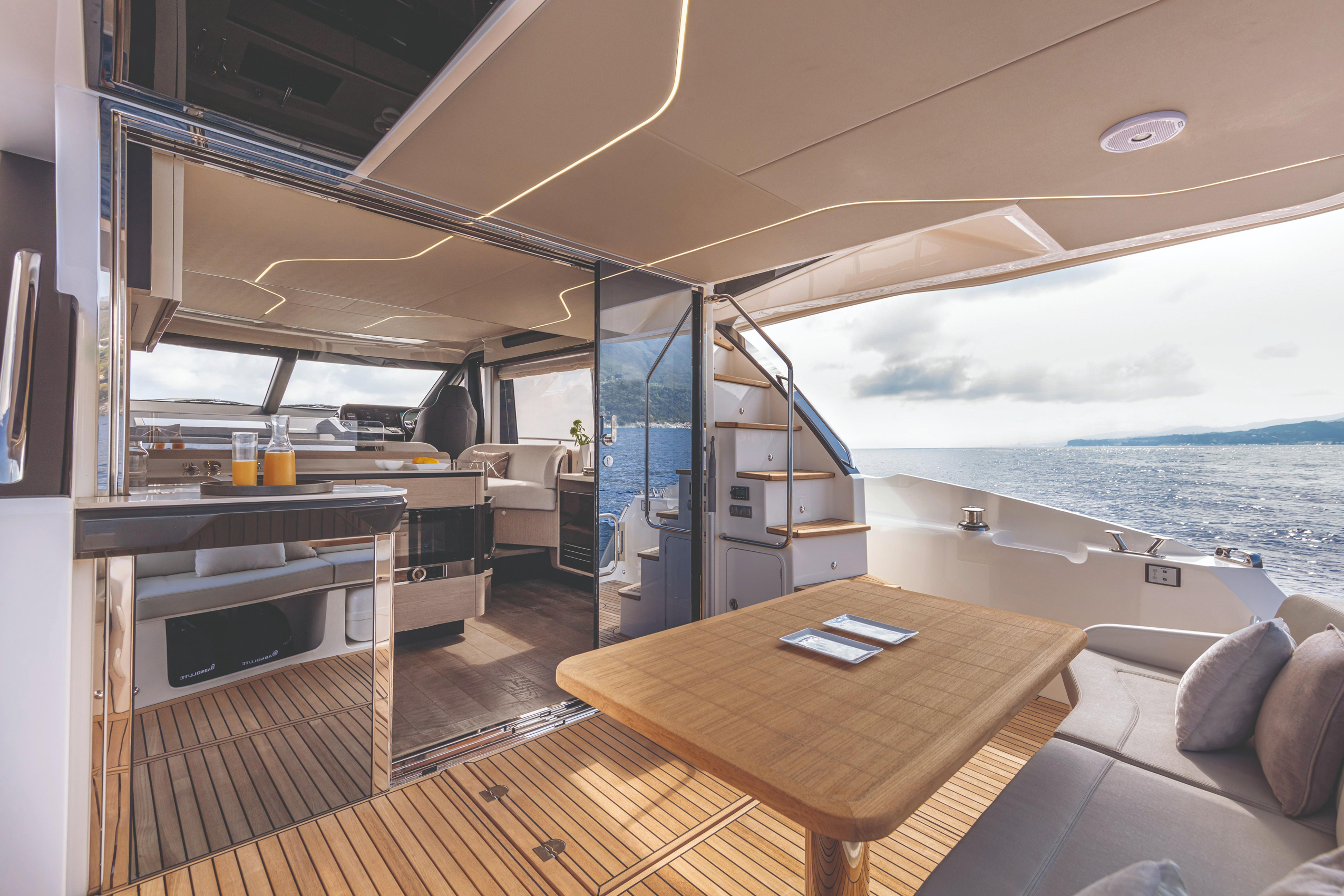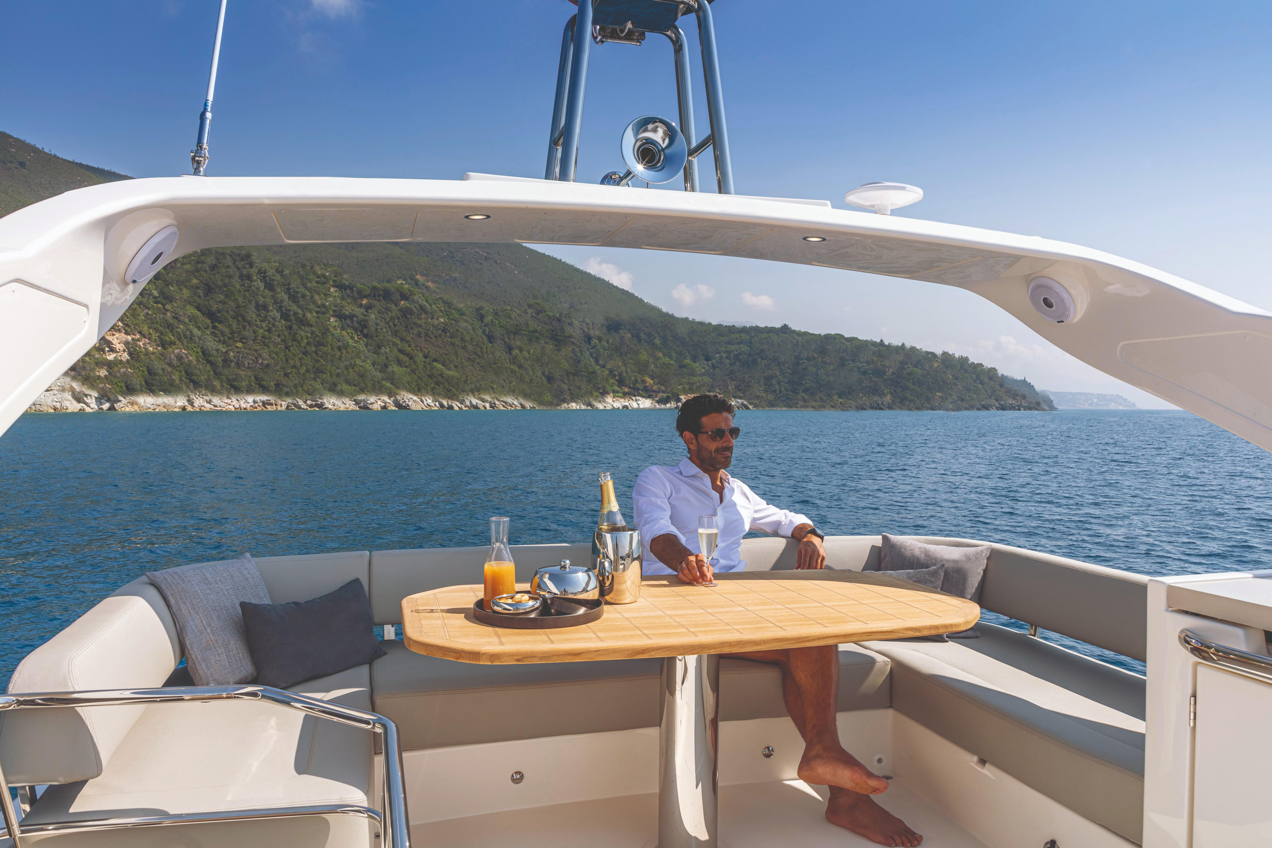 The engine is entrusted to Volvo Penta’s IPS650, which ensure low fuel consumption, high performance, good maneuverability and reduced noise and environmental emissions for an optimal and… sustainable boating experience.