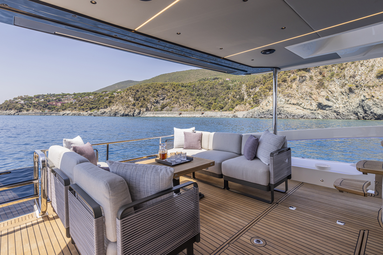 56 FLY – Charisma is a proven mix of engineering innovation, Italian design and a passion for details: it stands out with its personality, comfort and versatility, captivating lines and on-board living space, for you to experience the pleasure of the sea freely and to fully enjoy its boundless panorama.