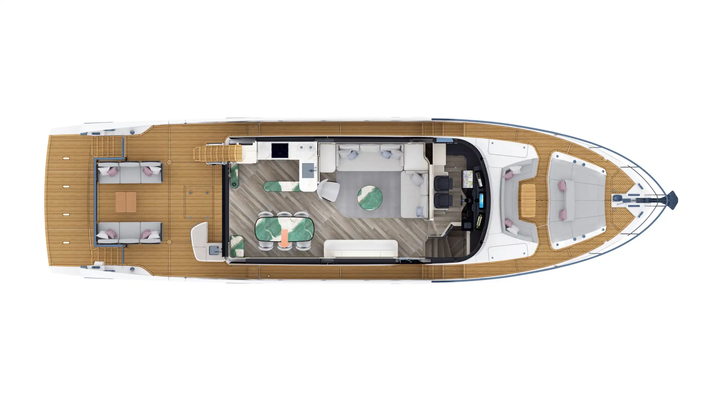 The innovative design of the Navetta 70 is characterized by an intelligent and balanced distribution of spaces.