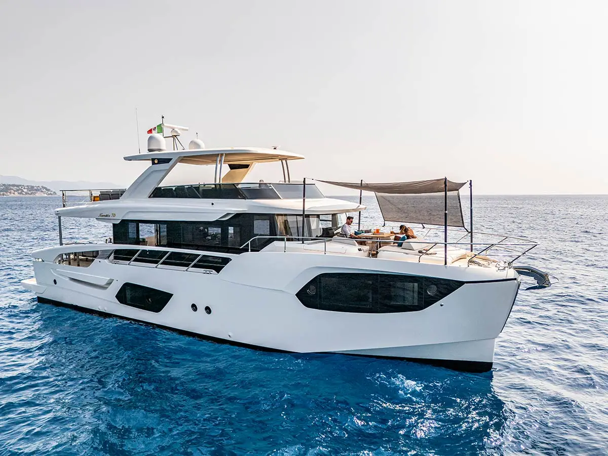 The new Navetta 70 introduces innovative design elements, elegant and on-trend, without forgoing some distinctive features of the Absolute brand, such as the iconic side glass railings.