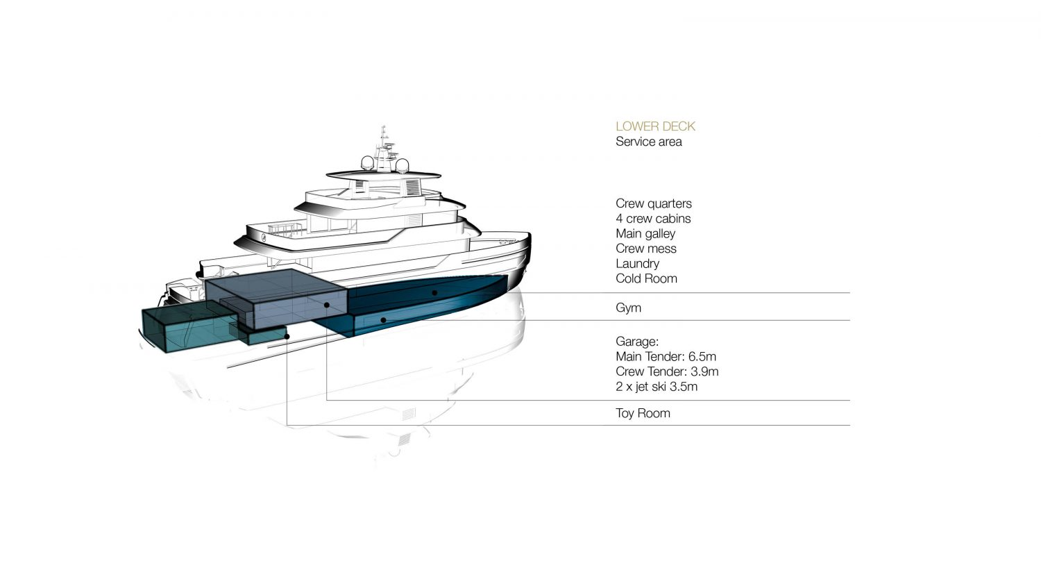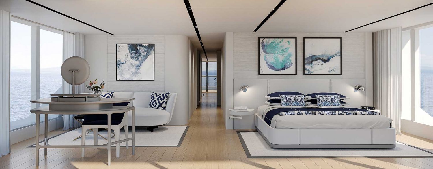 The balanced, elegant proportions of the Main and Lower Decks merge into the hull’s contours