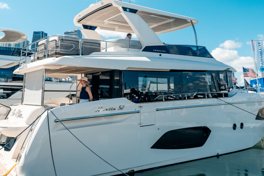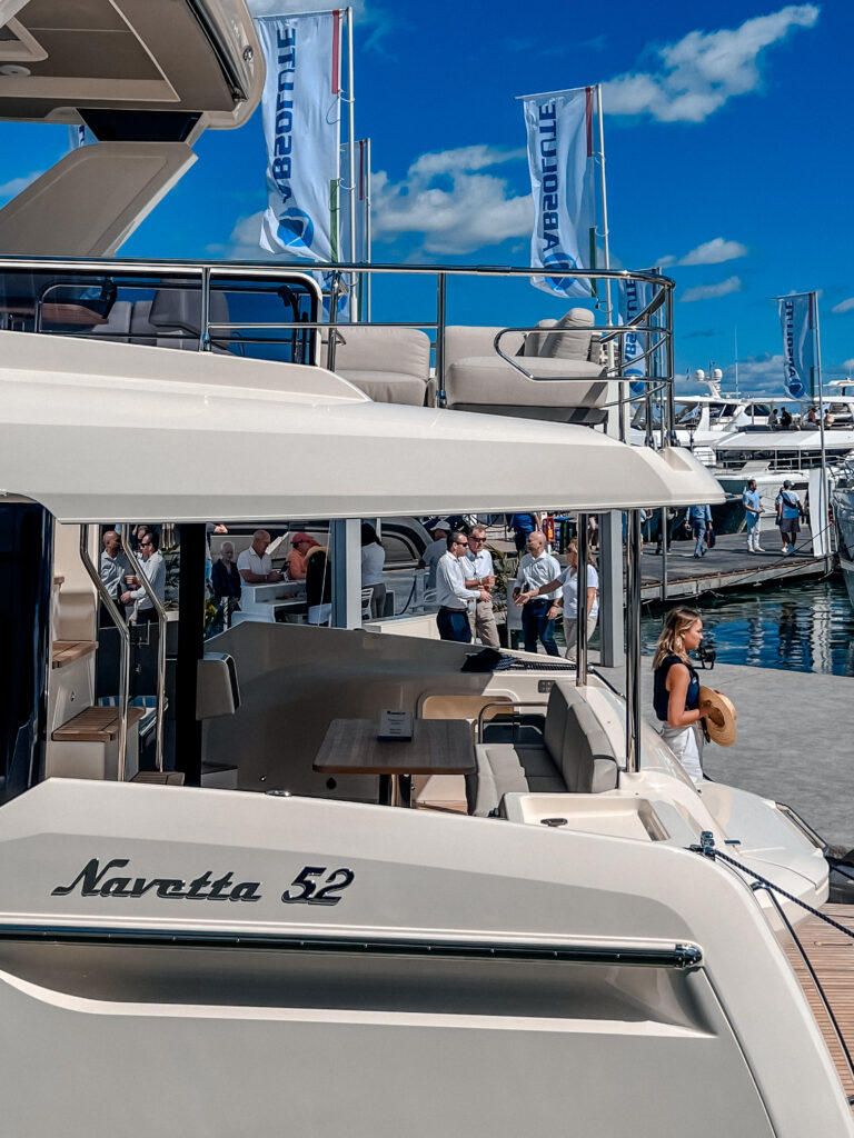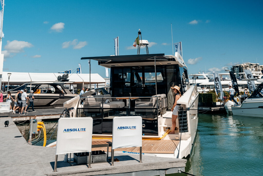 The Absolute Yachts Booth was the place with four of Absoluteโs most iconic models: Navetta 75, Navetta 58, Navetta 52, and 48 Coupรฉ.