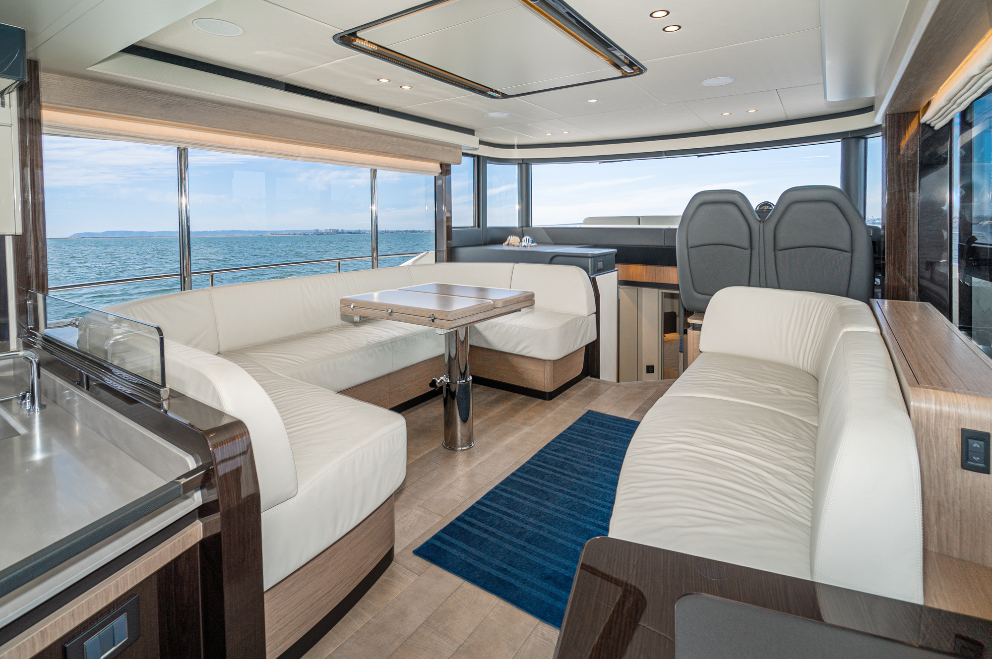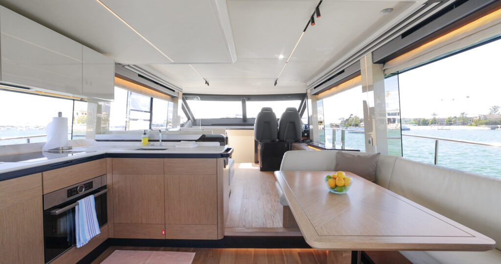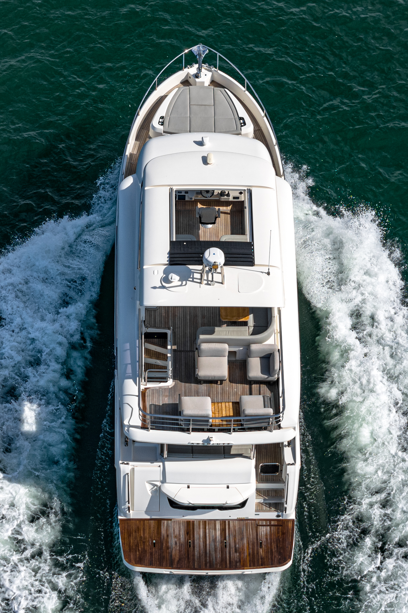 A new dimension of nautical living, 60 FLY, The Absolute Prisma, expresses all the innovation of our shipyard by implementing revolutionary solutions for a boat of this size. The design is dynamic and captivating, with external lines enriched by elegant transparencies thanks to the new glazed balustrades; large windows surround the main deck, creating exclusive contrasts and giving the interiors unparalleled luminosity.