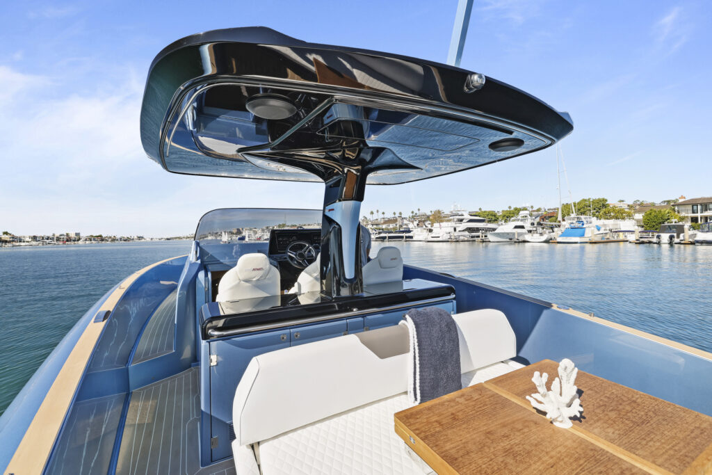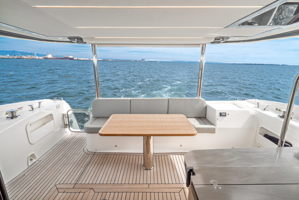 The 40 Open sets new standards for the category, boasting layout and volumes of a 43 footer. The hull shape guarantees great stability and comfort when cruising and at anchor, without the need for stabilizers. The advanced studies on the shapes of the hull, ensure low fuel consumption, resulting in excellent range and reduced CO2 emissions.