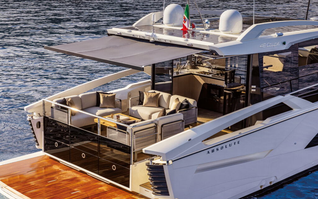 The Absolute 48 Coupe is a refined expression of long-range luxury, offering exceptional comfort, volume, and livability through timeless Italian design. Expansive interiors, panoramic windows, and thoughtful layouts create a seamless connection between indoor elegance and life on the water.