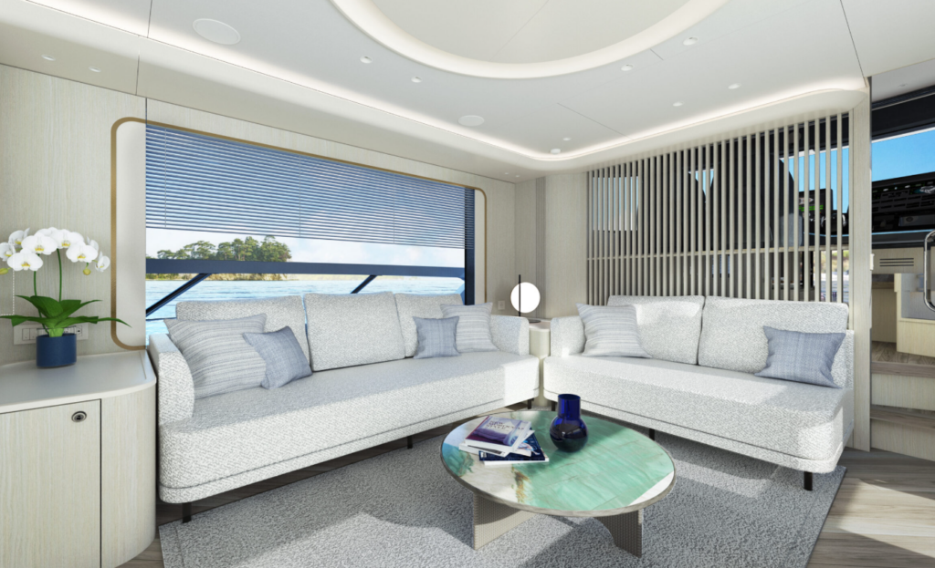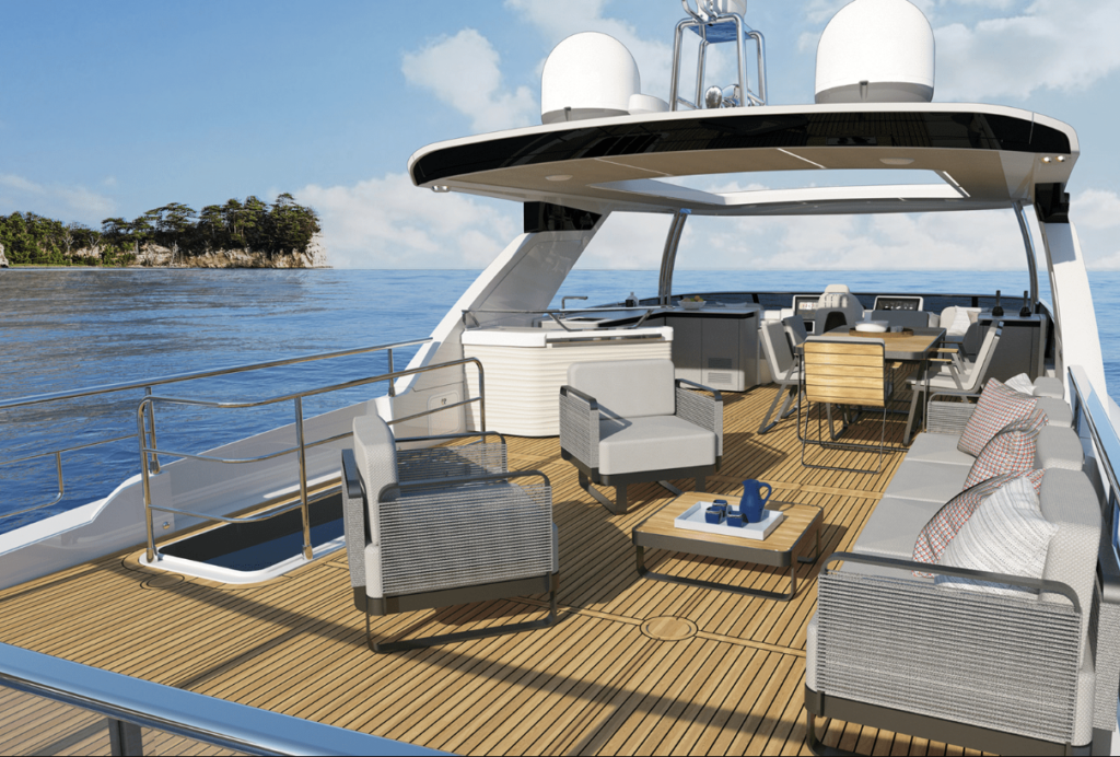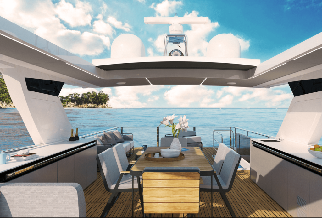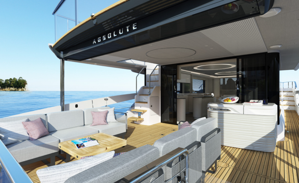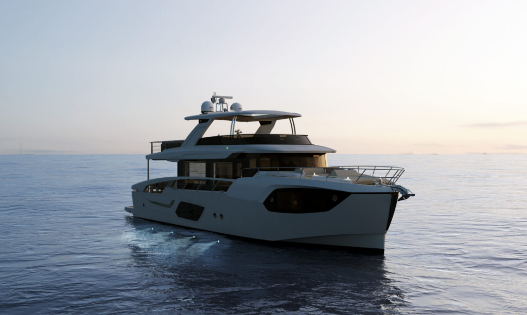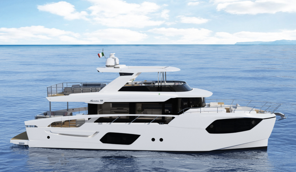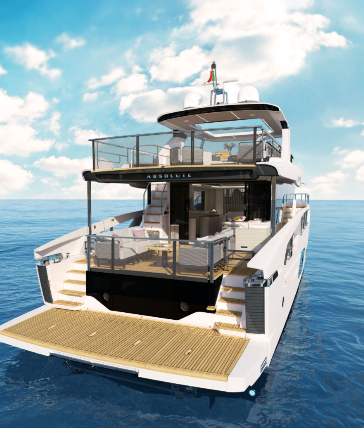 Absolute has unveiled a stunning new addition to its fleet: the Navetta 70! This yacht’s exterior is marked by sleek, dynamic lines, with a newly reimagined flybridge and a generously sized terrace cockpit that invites relaxation. Inside, the design exudes contemporary sophistication, with meticulously crafted furniture in light hues and high-quality materials, creating an ambiance of modern luxury. The Navetta 70 also introduces cutting-edge design elements that are both elegant and fashionable, while retaining the signature Absolute features, including the iconic side glass railings.
