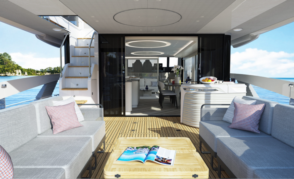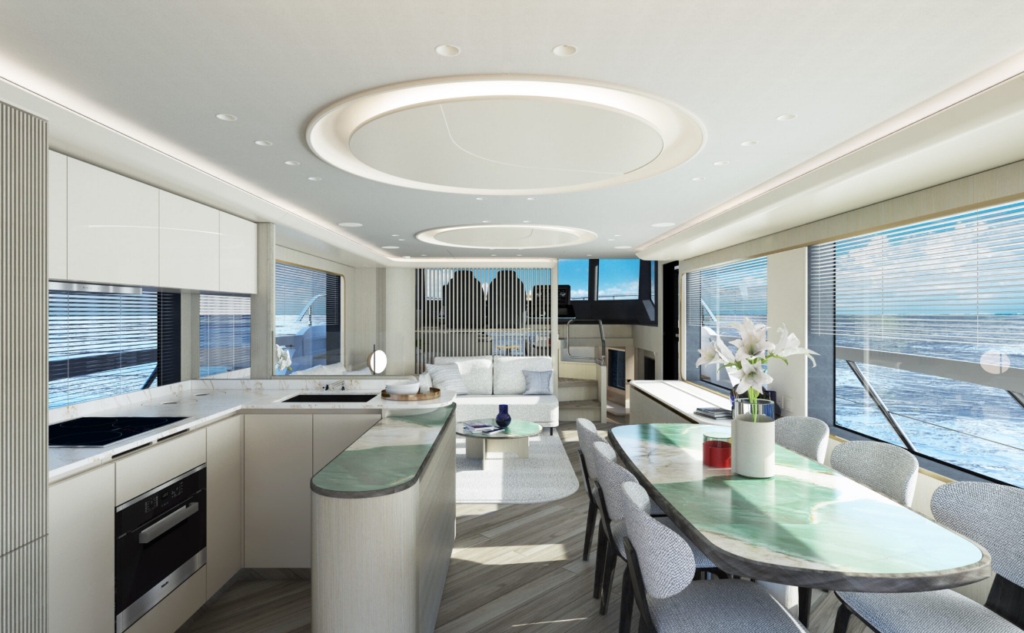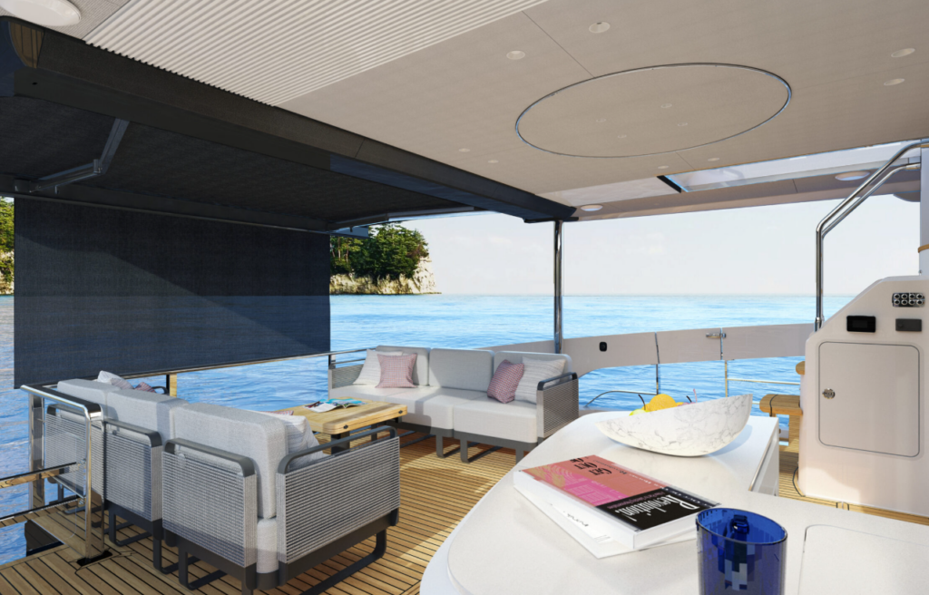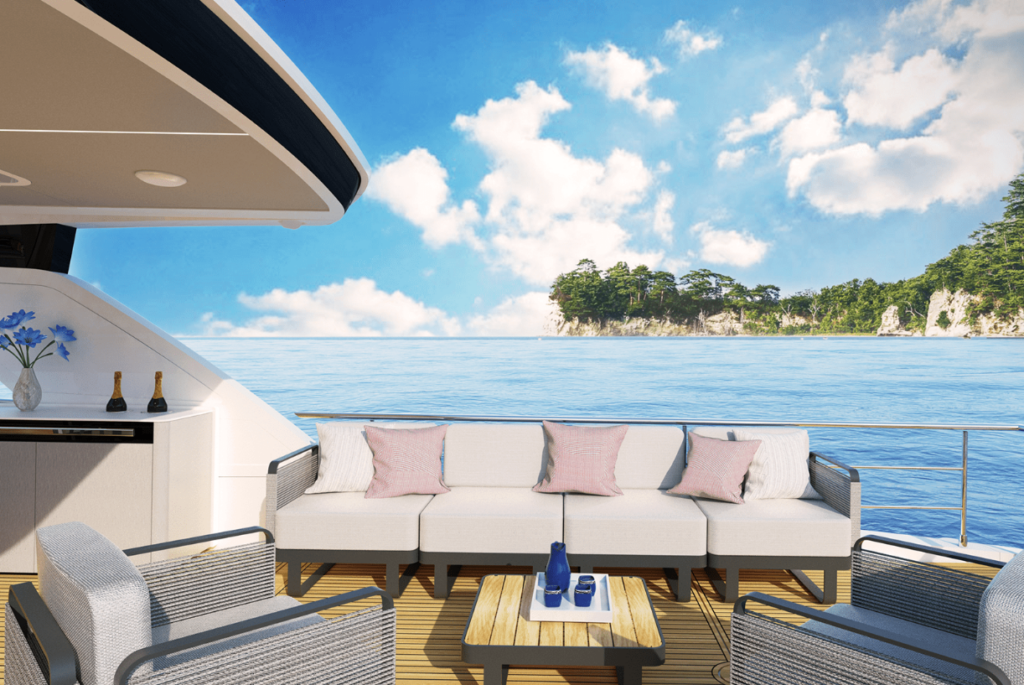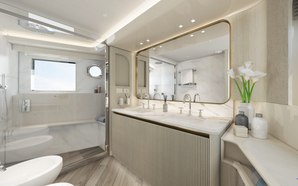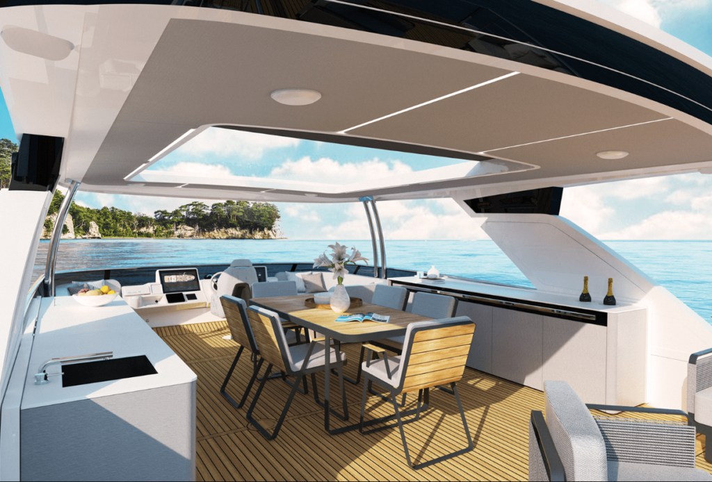 Absolute has unveiled a stunning new addition to its fleet: the Navetta 70! This yacht’s exterior is marked by sleek, dynamic lines, with a newly reimagined flybridge and a generously sized terrace cockpit that invites relaxation. Inside, the design exudes contemporary sophistication, with meticulously crafted furniture in light hues and high-quality materials, creating an ambiance of modern luxury. The Navetta 70 also introduces cutting-edge design elements that are both elegant and fashionable, while retaining the signature Absolute features, including the iconic side glass railings.