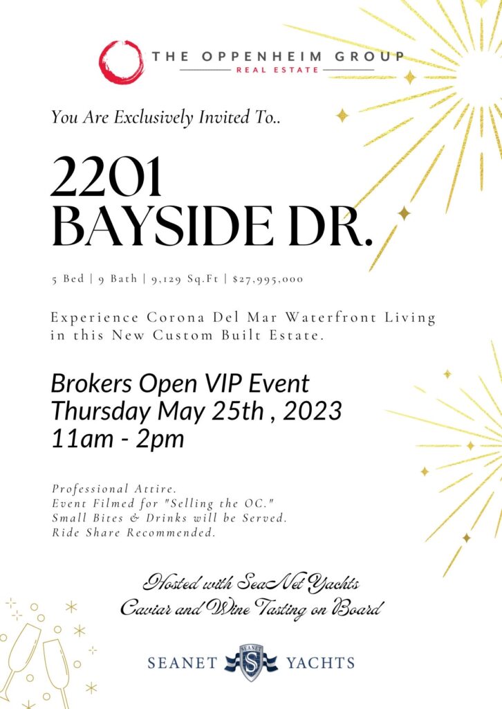 2201 Bayside Drive: The broker open event took place at the magnificent property located at 2201 Bayside Drive, an architectural masterpiece showcasing modern elegance and breathtaking views. This luxurious residence, featured in the Oppenheim Group listing, offers an impressive array of features, including: