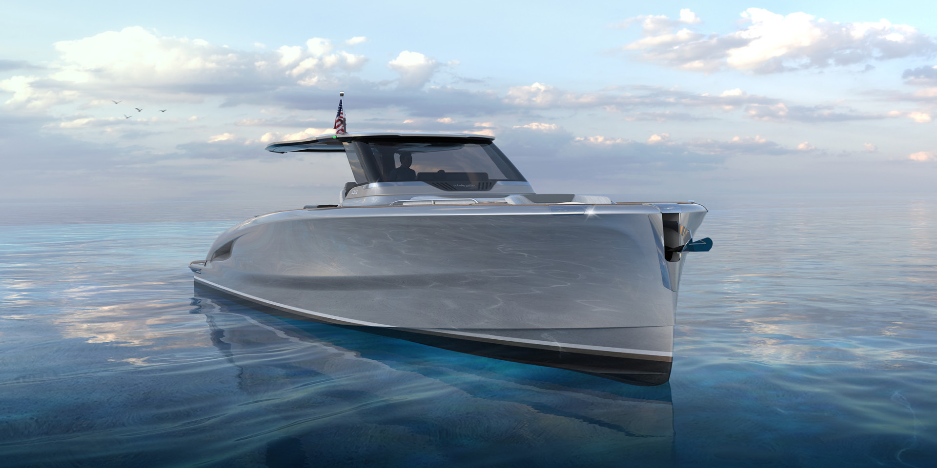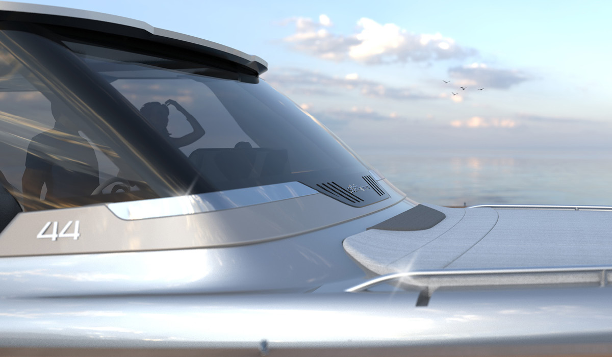 New 44 Open ST with extended t-top and full-height windshield. This version offers greater sun protection and significant shelter from the wind, while preserving the traditional Solaris Power elegance.